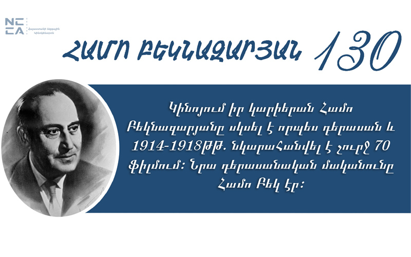 Այսօր հայ ազգային կինոյի և «Հայֆիլմ» կինոստուդիայի հիմնադիր, հայ կինոյի նահապետ, կինոռեժիսոր, սցենարիստ, կինոդերասան Համո Բեկնազարյանի 130-ամյա հոբելյանն է: