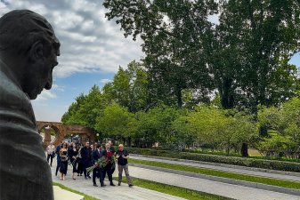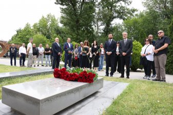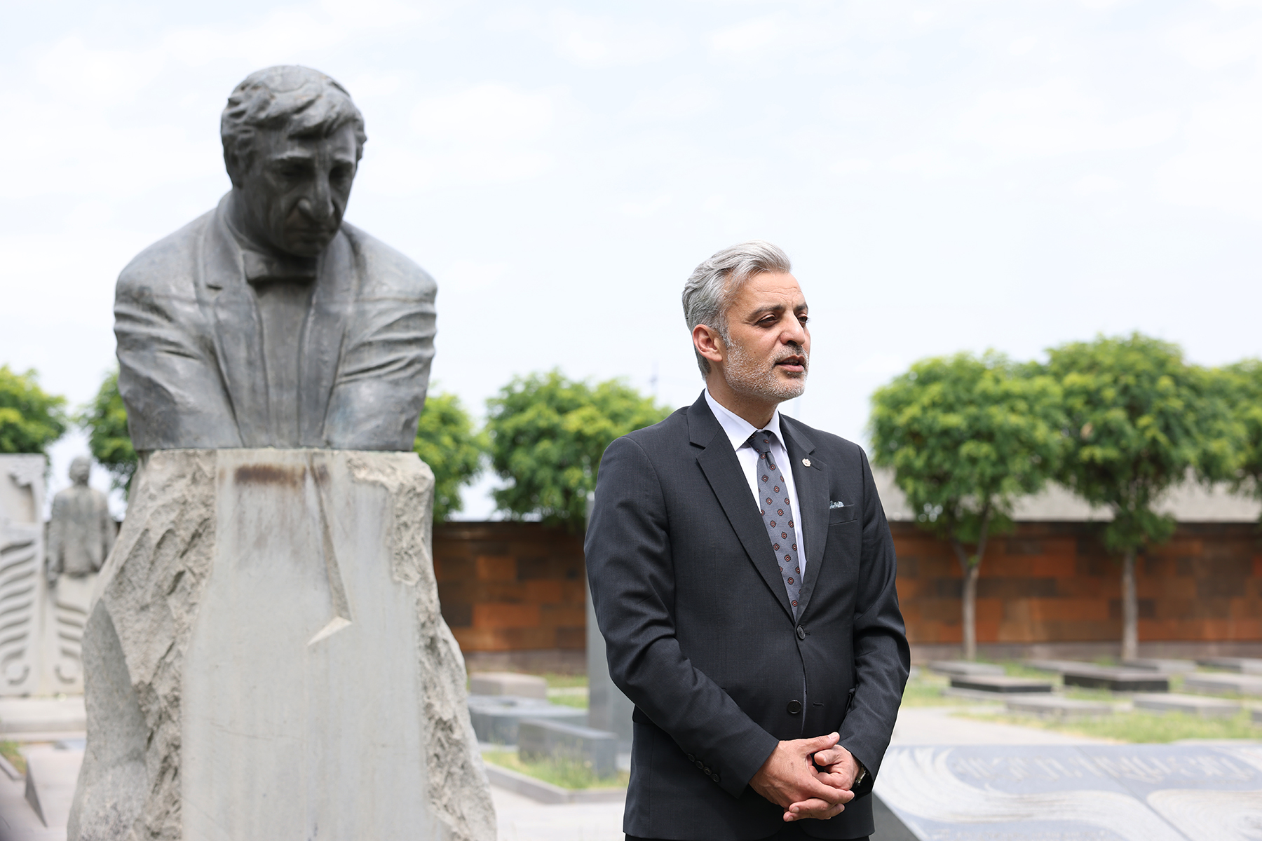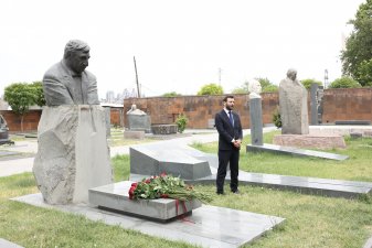 Կոմիտասի անվան պանթեոնում ծաղիկներ խոնարհվեցին թատրոնի և կինոյի մեծանուն դերասան Մհեր Մկրտչյանի շիրիմին՝ ծննդյան 95-ամյակի առթիվ։