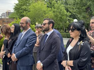 ՀՀ կրթության գիտության, մշակույթի և սպորտի նախարարի տեղակալ Դանիել Դանիելյանը, Հայաստանի կինոյի հիմնադրամի տնօրեն Դավիթ Բանուչյանը, Գ. Սունդուկյանի անվան ազգային ակադեմիական թատրոնի տնօրեն Վարդան Մկրտչյանը, Մհեր Մկրտչյանի անվան արտիստական թատրոնի փոխտնօրեն Մխիթար Մելոքնյանը, Թբիլիսիի Պետրոս Ադամյանի անվան հայկական թատրոնի տնօրեն Արմեն Բայանդուրյանը, Վրաստանի թատերական քննադատների միության նախագահ Նիկոլոզ Ծուլուկիձեն, Թբիլիսիի քաղաքապետարանի մշակույթի վարչության տնօրեն Նինո Սուլաձեն, Թբիլիսիի Շոթա Ռուսթավելու անվան ակադեմիական թատրոնի փոխտնօրեն Դալի Թաբաղարին, կինոպրոդյուսեր Դավիթ Բեջիտաշվիլին, ինչպես նաև մշակույթի ոլորտի մի խումբ ներկայացուցչներ և արվեստասերներ դերասանի հիշատակին իրենց հարգանքի տուրքը մատուցեցին: